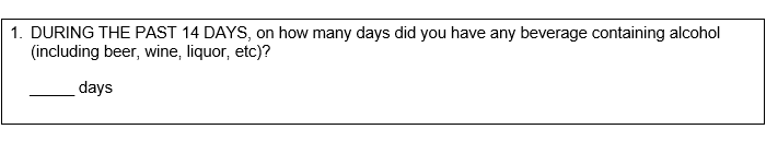 All of these questions ask about your drinking DURING THE PAST 14 DAYS. For each question, please indicate the correct number in the space provided.
